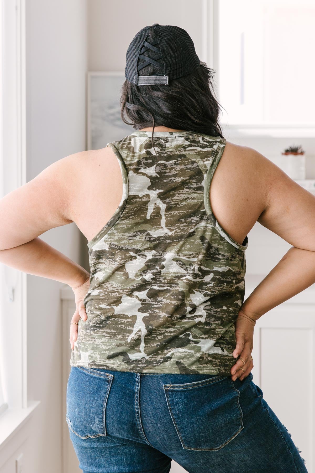 Feel like the powerful woman you are in this amazing tank. Wear it casually or to the gym to break a sweat and feel cute while doing so. It is lightweight and breathable for the warmer months, and has the cutest camo print that pairs with just about everything. You won’t regret getting this one!