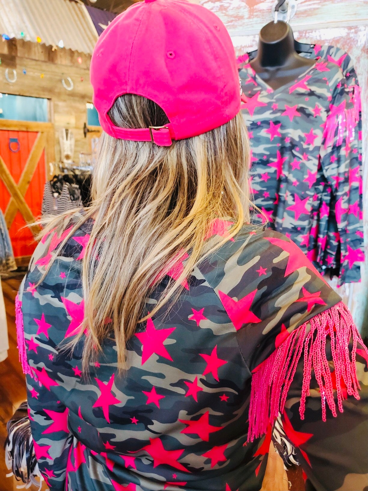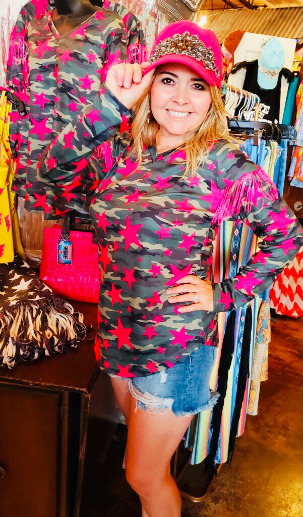 Neon Pink Camo Stars Top