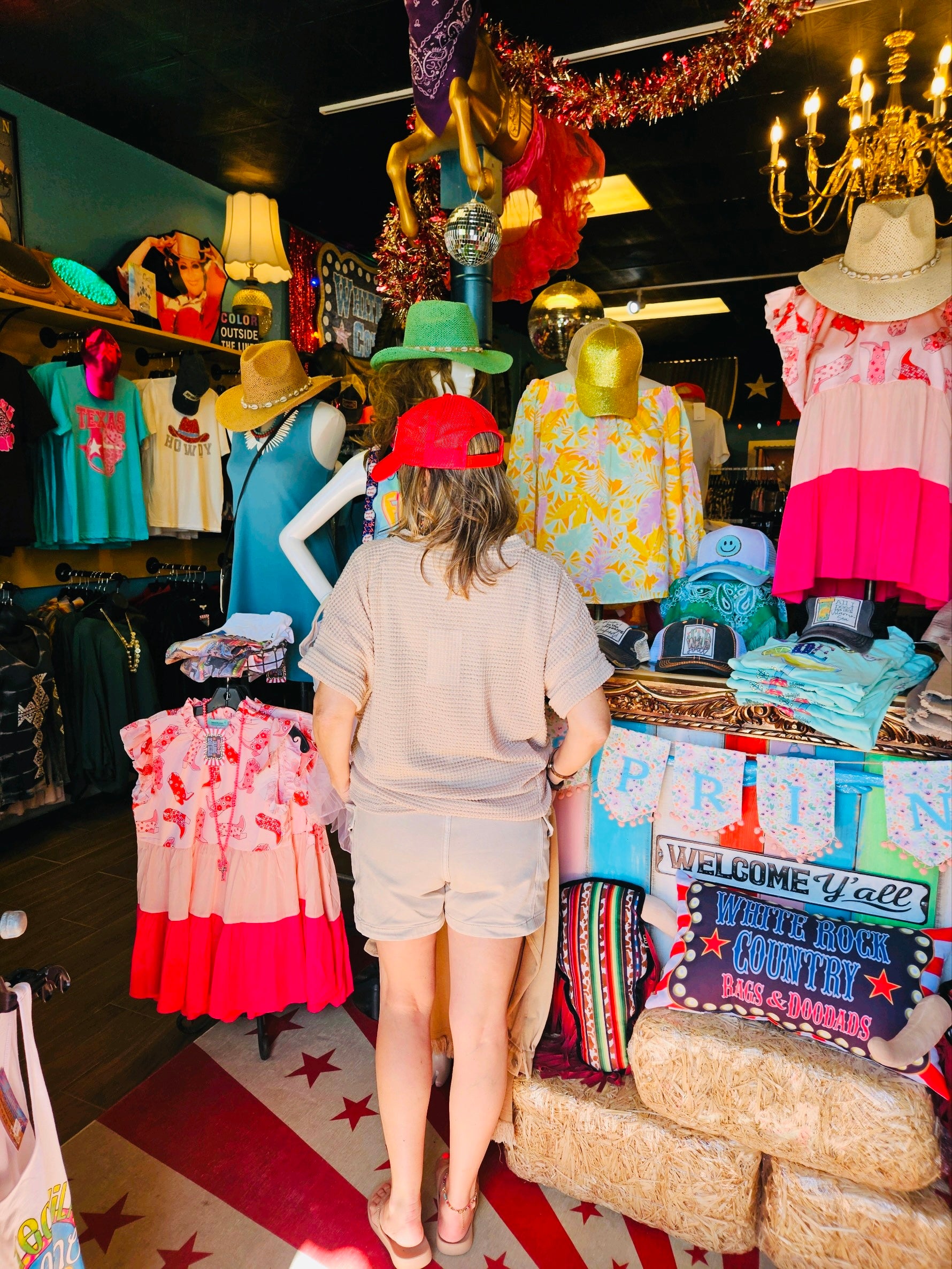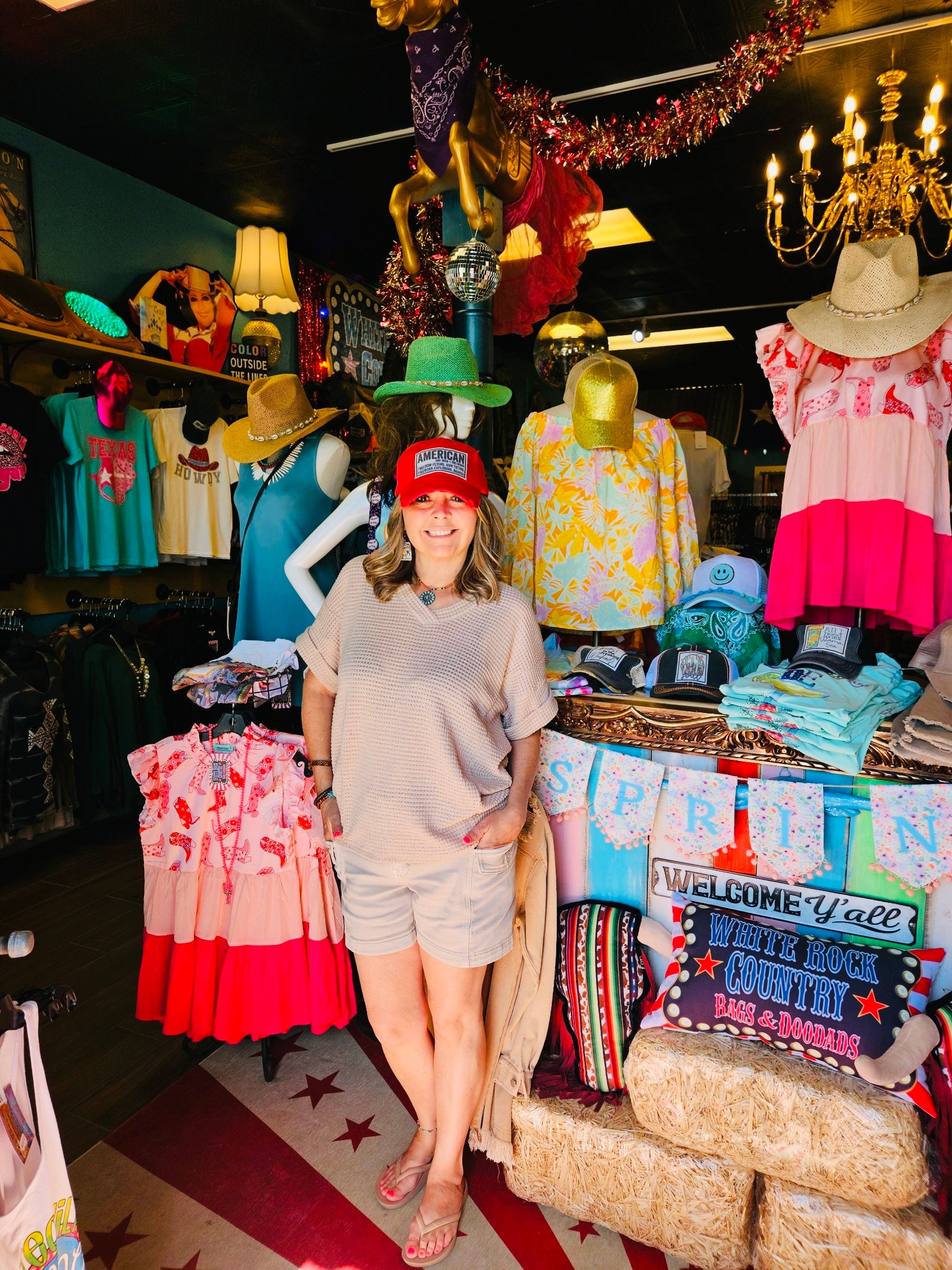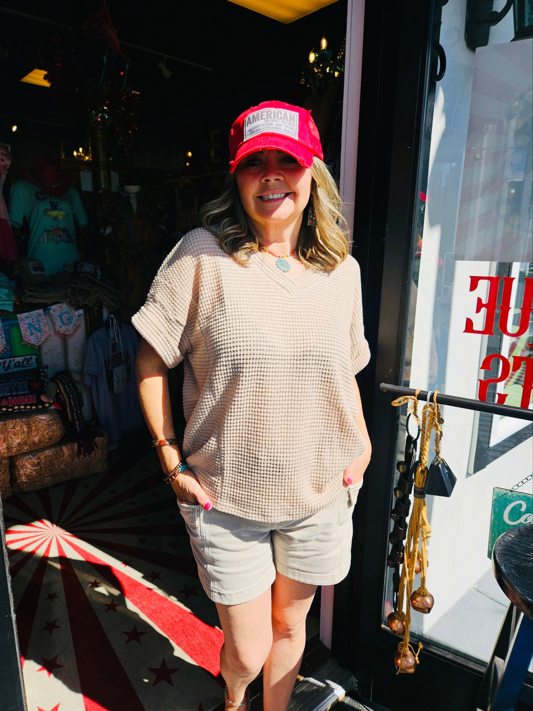 Sandy taupe short sleeve light weight casual waffle v neck top