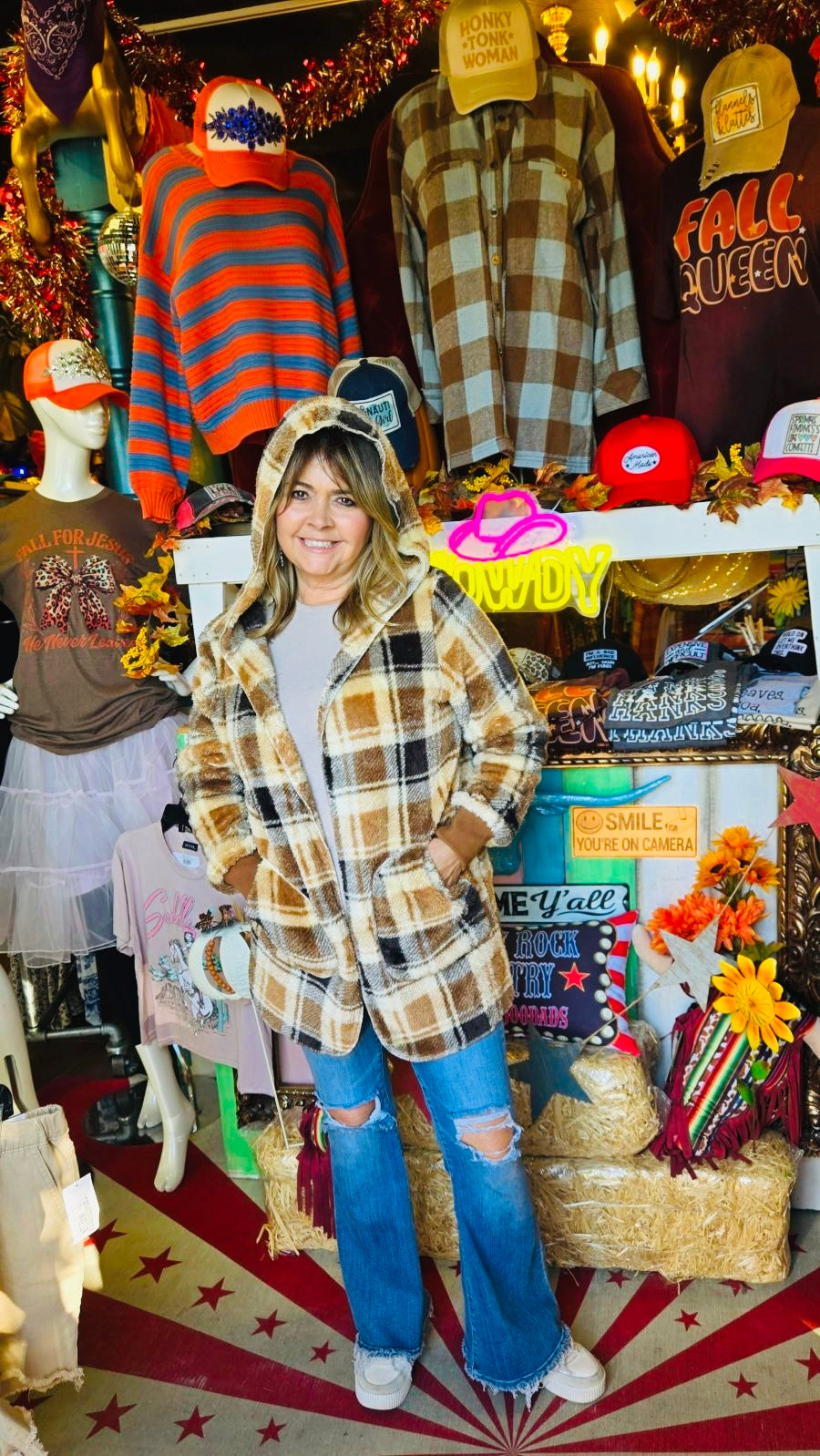 Zoie camel mix super soft furry jacket two front pockets & hoodie